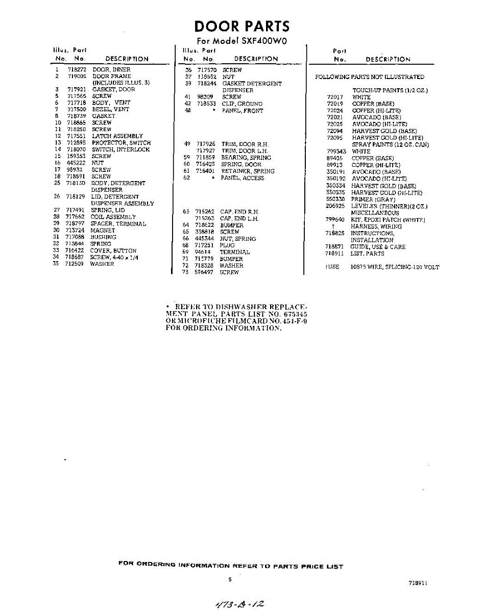 Parts for Whirlpool SXF400W0: 05 - Lit / Optional Parts