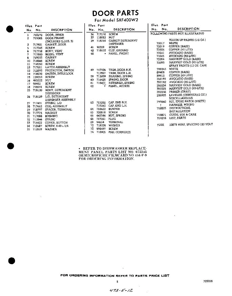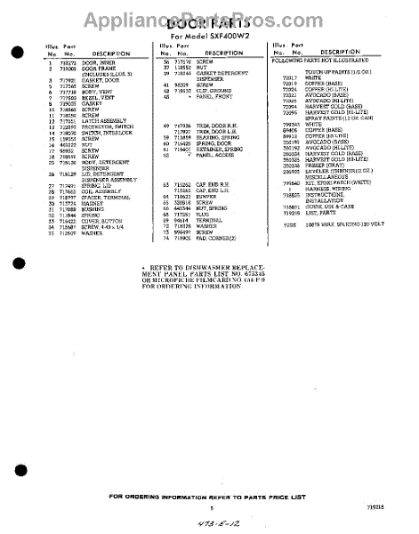 Parts for Whirlpool SXF400W2: 05 - Lit / Optional Parts