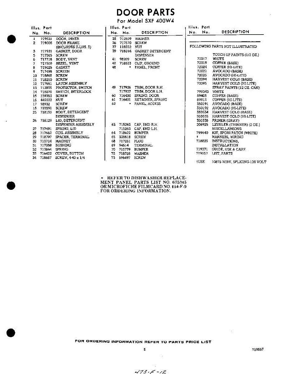 Parts for Whirlpool SXF400W4: 05 - Lit / Optional Parts