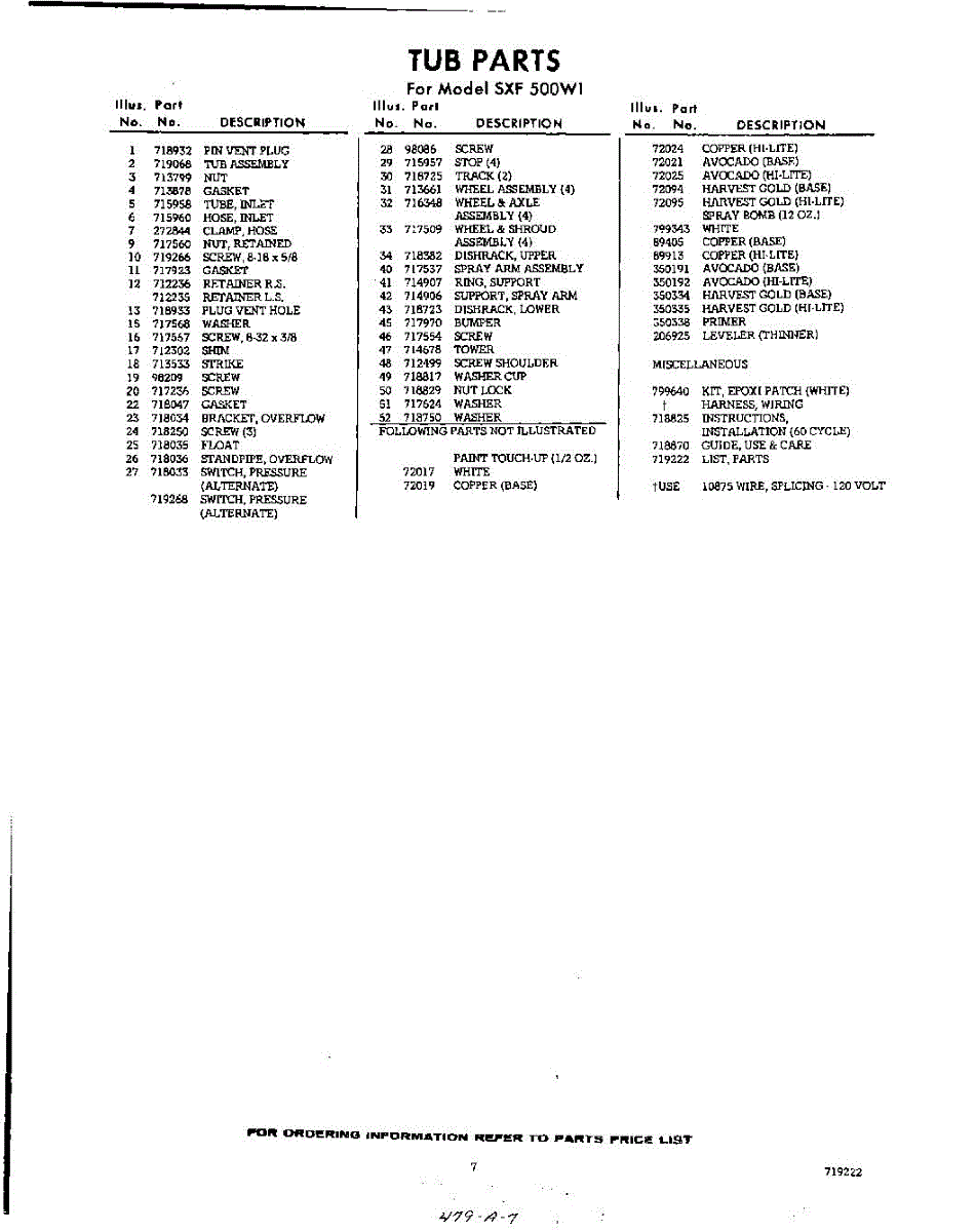Parts for Whirlpool SXF500W1: 07 - Lit / Optional Parts