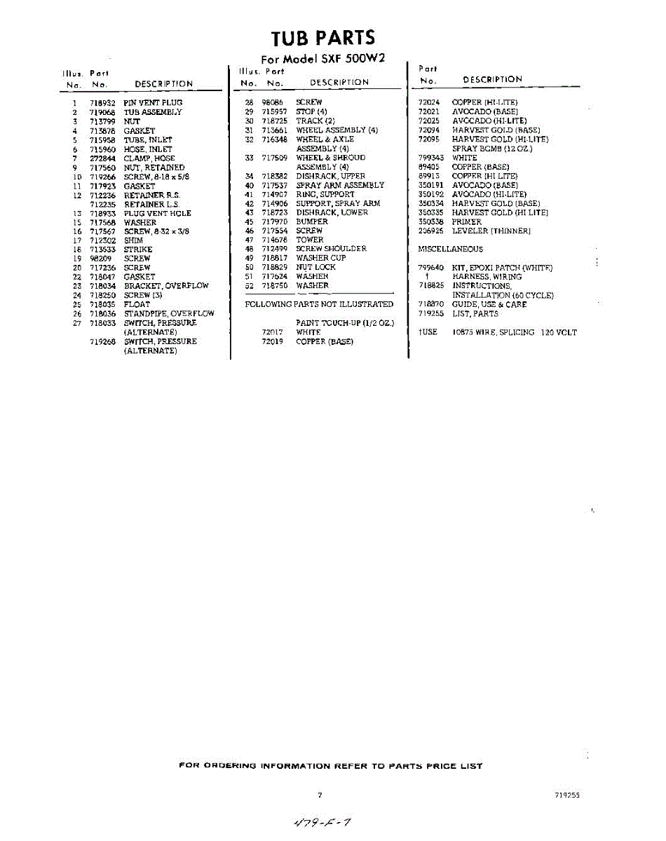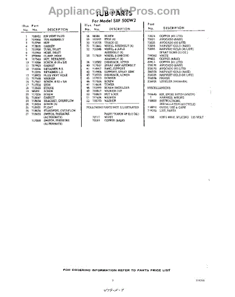 Parts for Whirlpool SXF500W2: 07 - Lit / Optional Parts