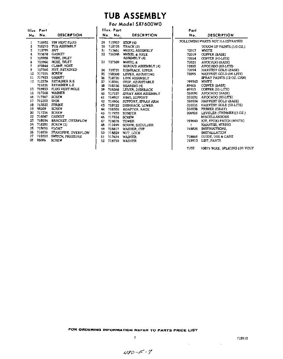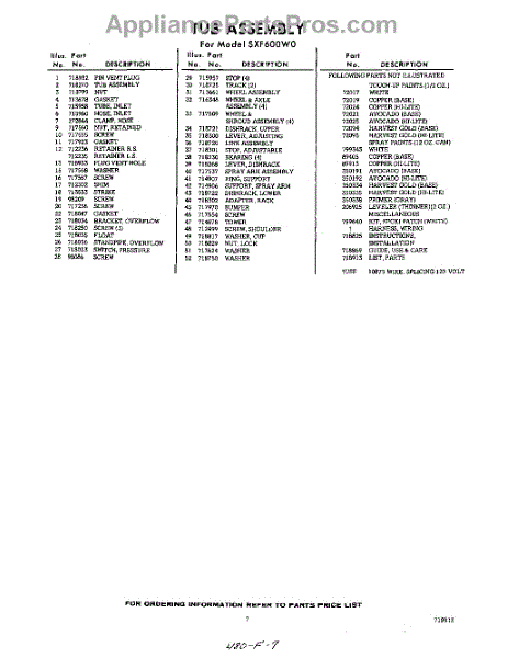 Parts for Whirlpool SXF600W0: 07 - Lit / Optional Parts
