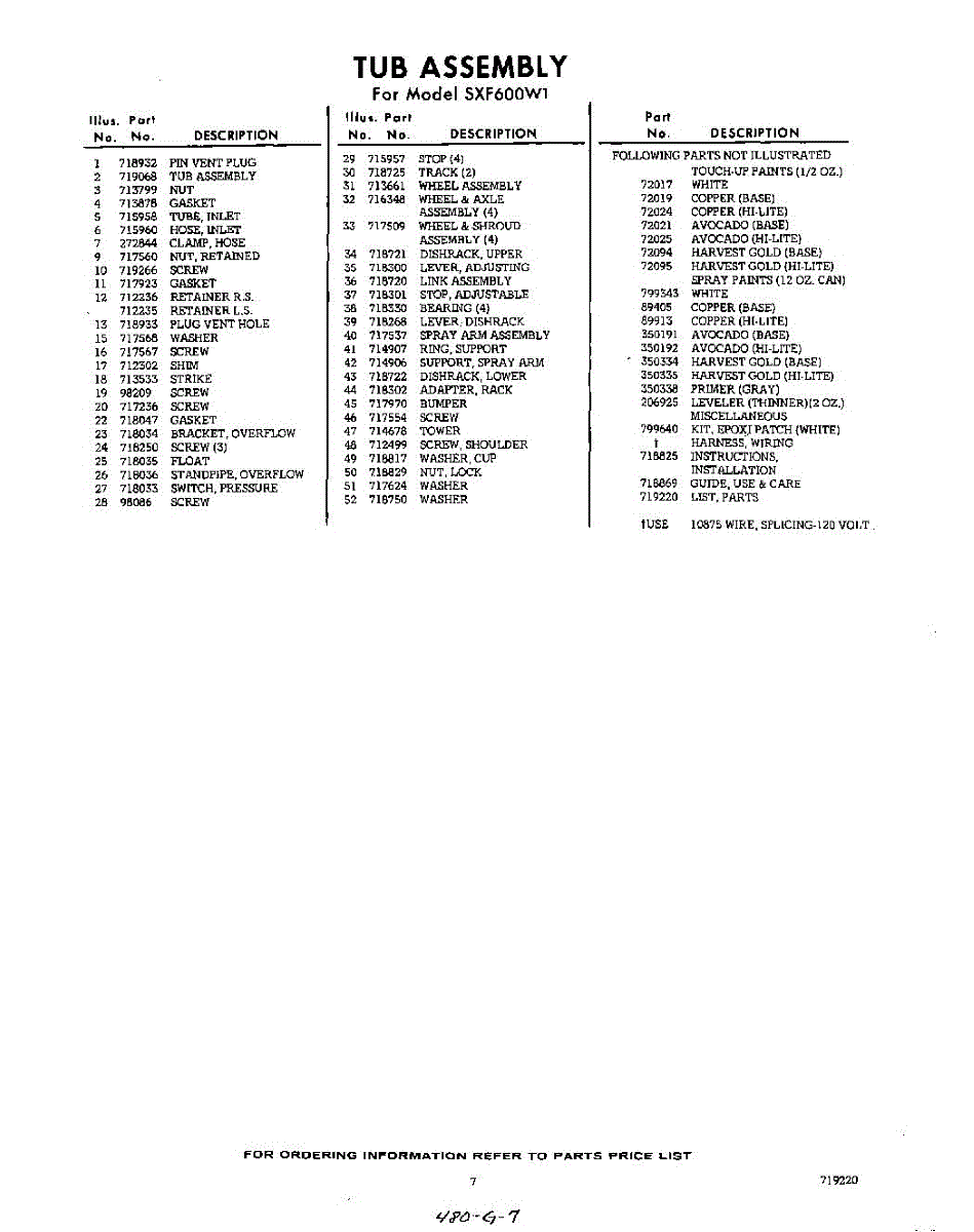 Parts for Whirlpool SXF600W1: 07 - Lit / Optional Parts