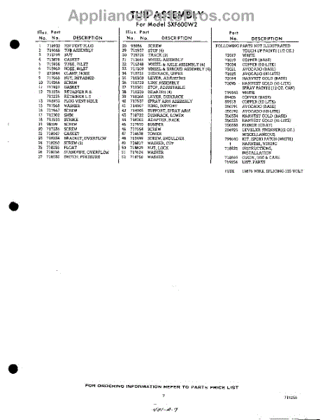 Parts for Whirlpool SXF600W2: 07 - Lit / Optional Parts