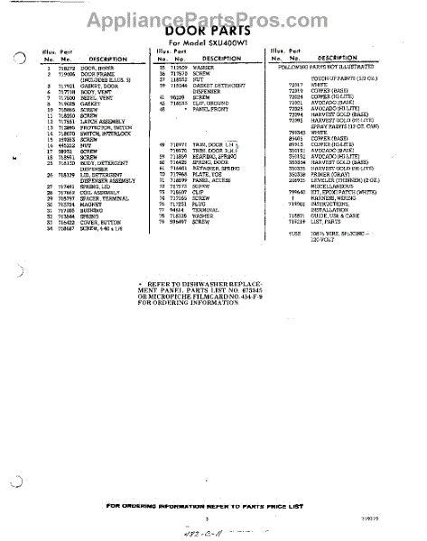Parts for Whirlpool SXU400W1: 03 - Lit / Optional Parts