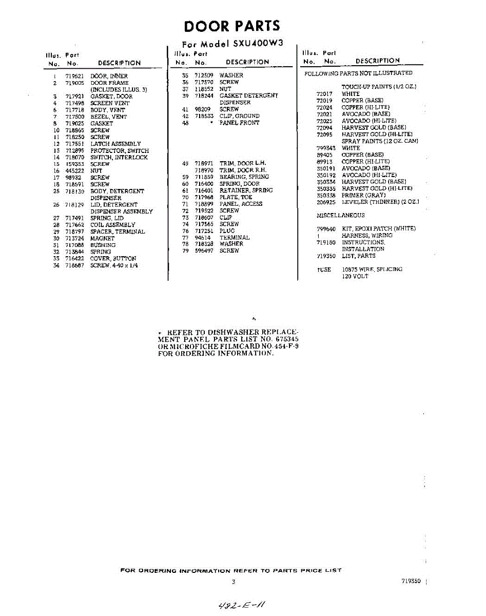 Parts for Whirlpool SXU400W3: 03 - Lit / Optional Parts