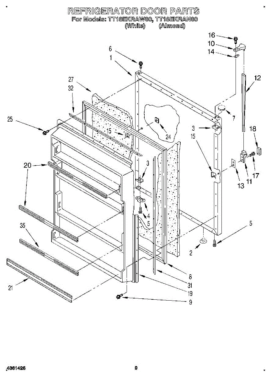 Foam insulation panel that fits inside refrigerator doors to maintain temperature efficiency. Replace if cracked, compressed, or missing.