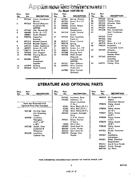 Parts for Whirlpool 1AHF18090: 05 - Literature And Optional Parts