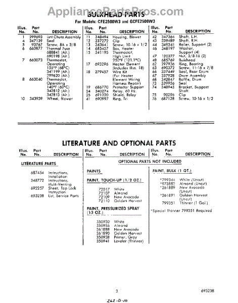 Parts for Whirlpool CFE2500W3: 03 - Literature And Optional Parts