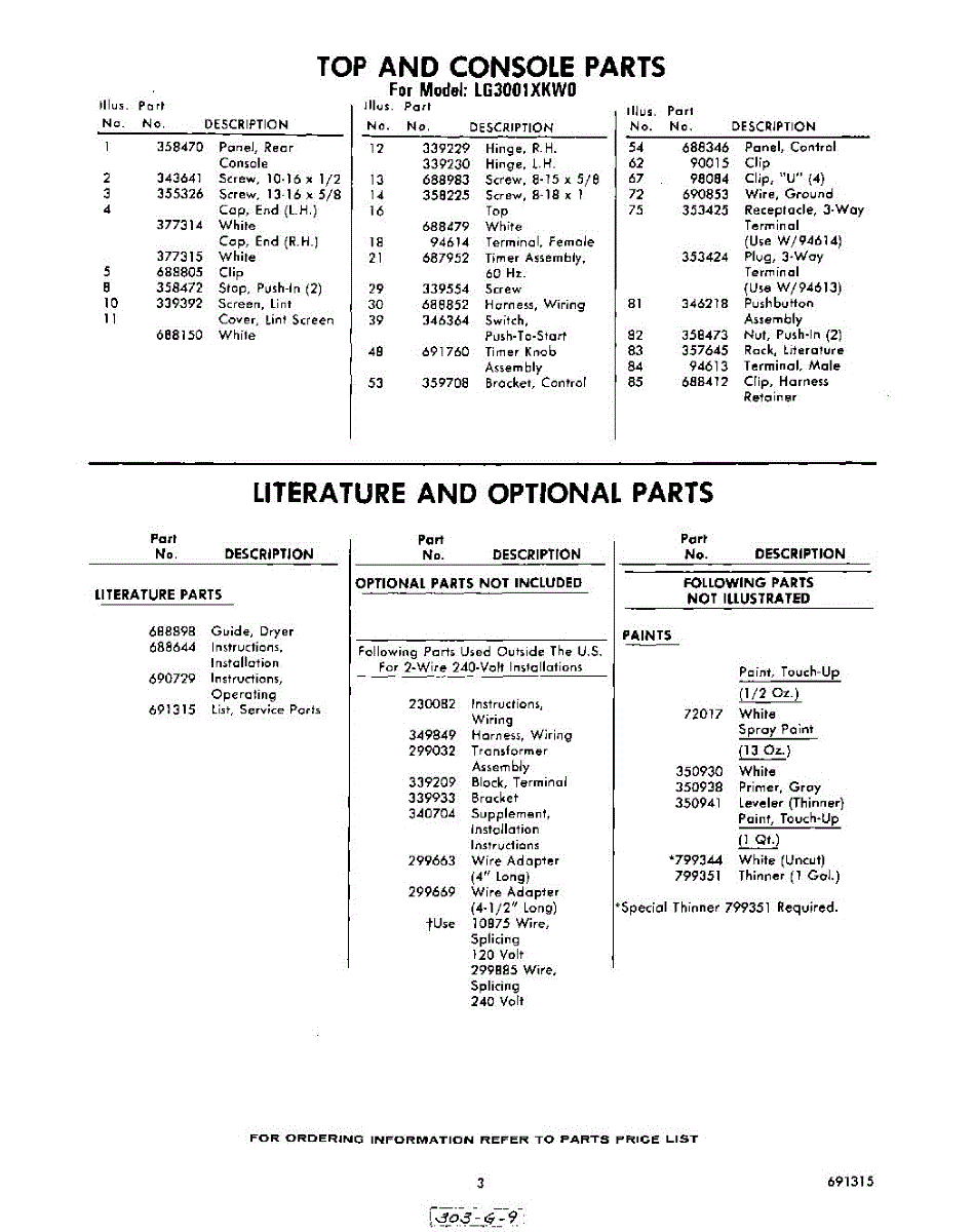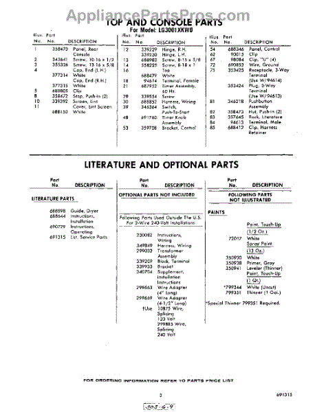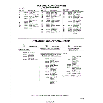 Parts for Whirlpool LG3001XKW0: 03 - Literature And Optional Parts