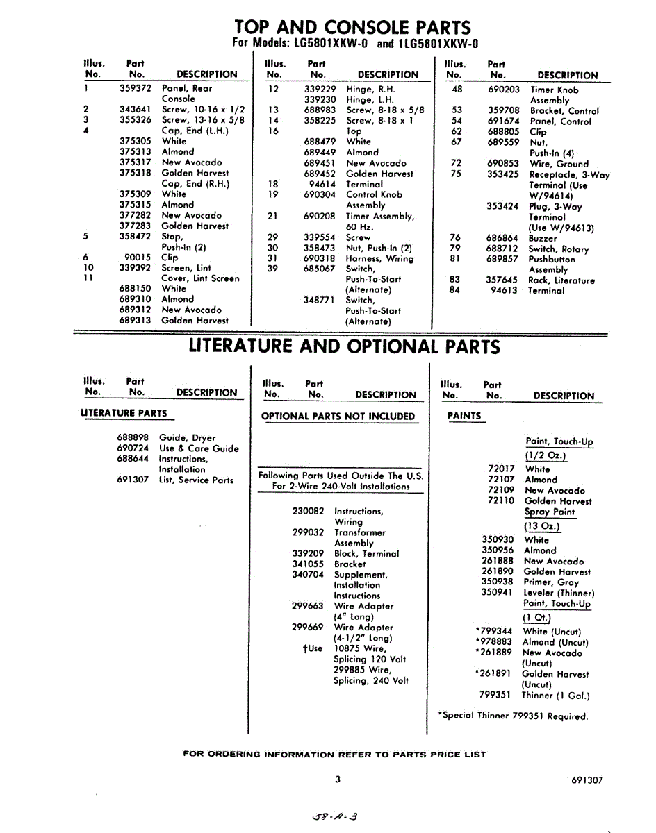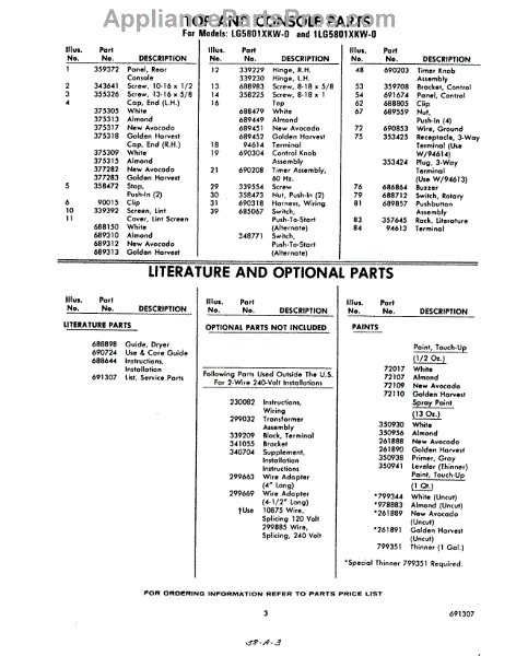 Parts for Whirlpool LG5801XKW0: 03 - Literature And Optional Parts