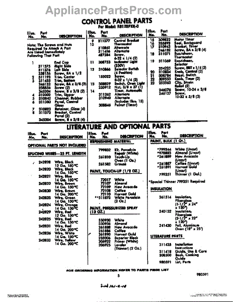 Parts for Whirlpool RB120PXK0: 05 - Literature And Optional Parts