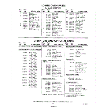 Parts for Whirlpool RE963PXKT2: 13 - Literature And Optional Parts