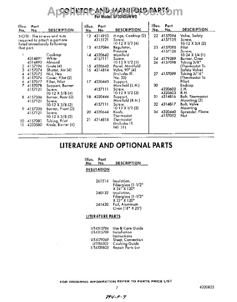 Parts for Whirlpool SF3040SWW0: 07 - Literature And Optional Parts