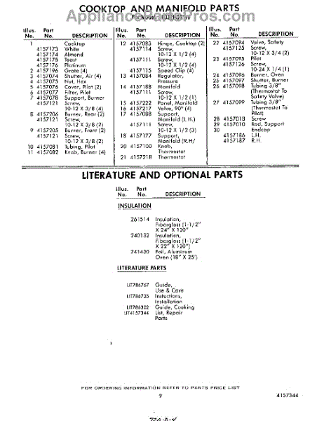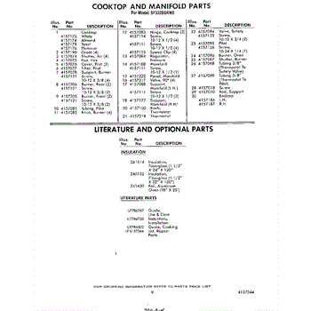 Parts for Whirlpool SF332BSRW0: 09 - Literature And Optional Parts