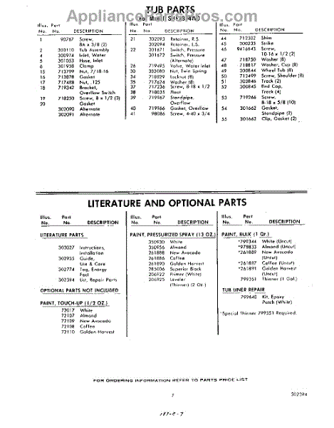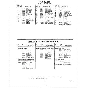 Parts for Whirlpool SHF7804W0: 07 - Literature And Optional Parts
