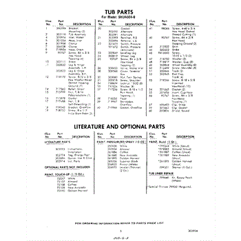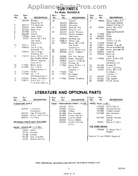 Parts for Whirlpool SHU40040: 03 - Literature And Optional Parts
