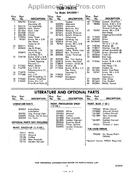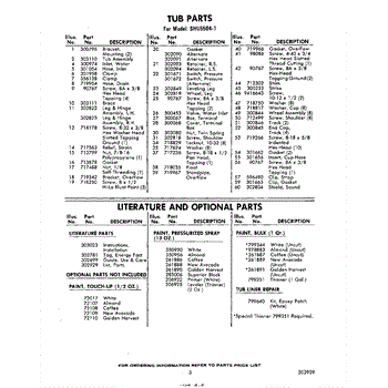 Parts for Whirlpool SHU55041: 03 - Literature And Optional Parts