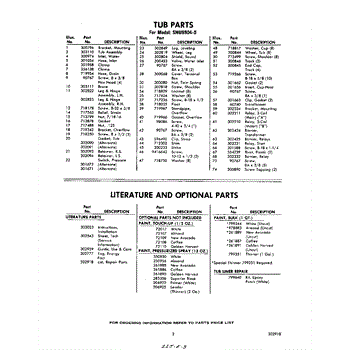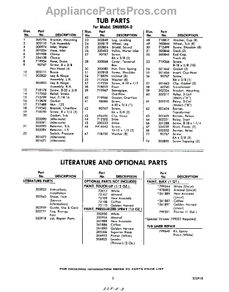 Parts for Whirlpool SHU99040: 03 - Literature And Optional Parts
