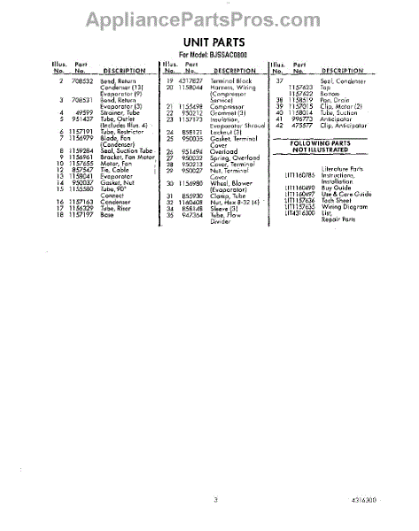 Parts for Whirlpool BJSSAC0800: 03 - Literature Parts