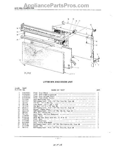 Parts for Kitchenaid KCS100A: 12 - Litter Bin And Door Parts