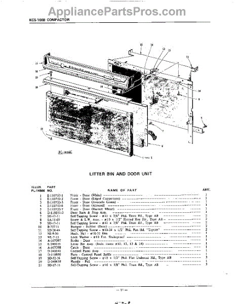 Parts for Kitchenaid KCS100B: 11 - Litter Bin And Door Parts