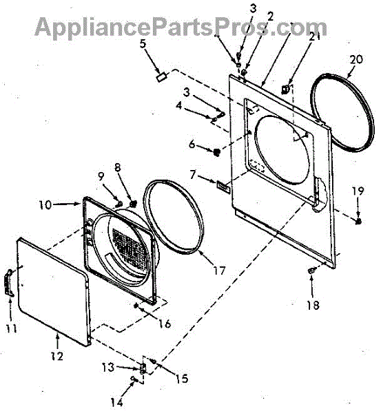 Parts for Speed Queen NE8633L43928: Loading Door, Front Panel And Seals Parts