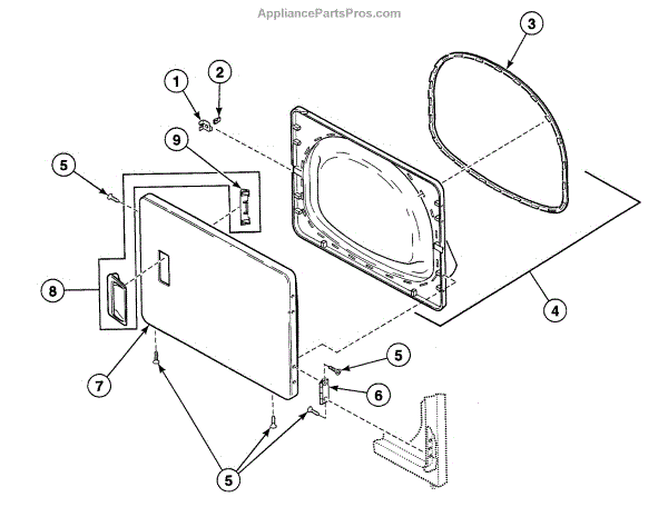 Parts for Speed Queen SDE507LF1500: Loading Door Parts