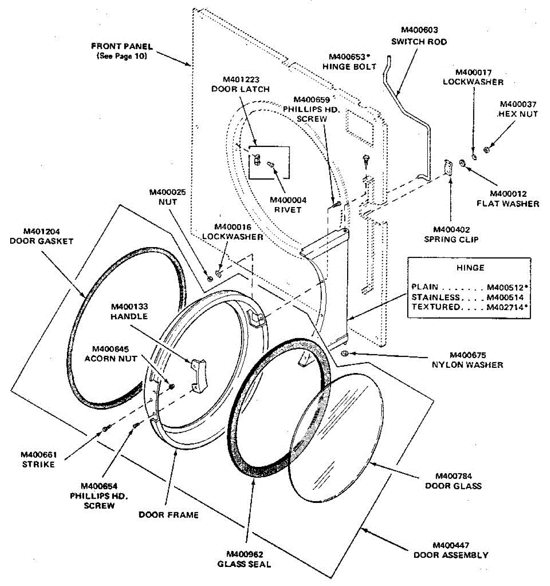 Parts for Huebsch 65CG: Loading Door And Switch Rod Assembly Parts