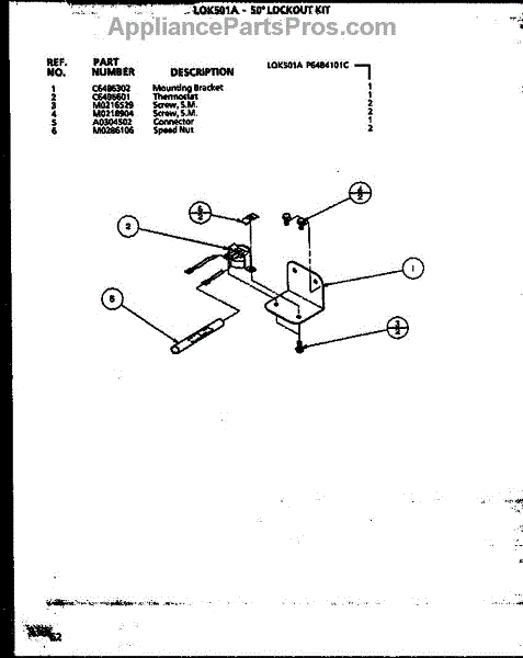 Parts for Amana SPCG481351A/P1106009C: Lockout Kit Parts