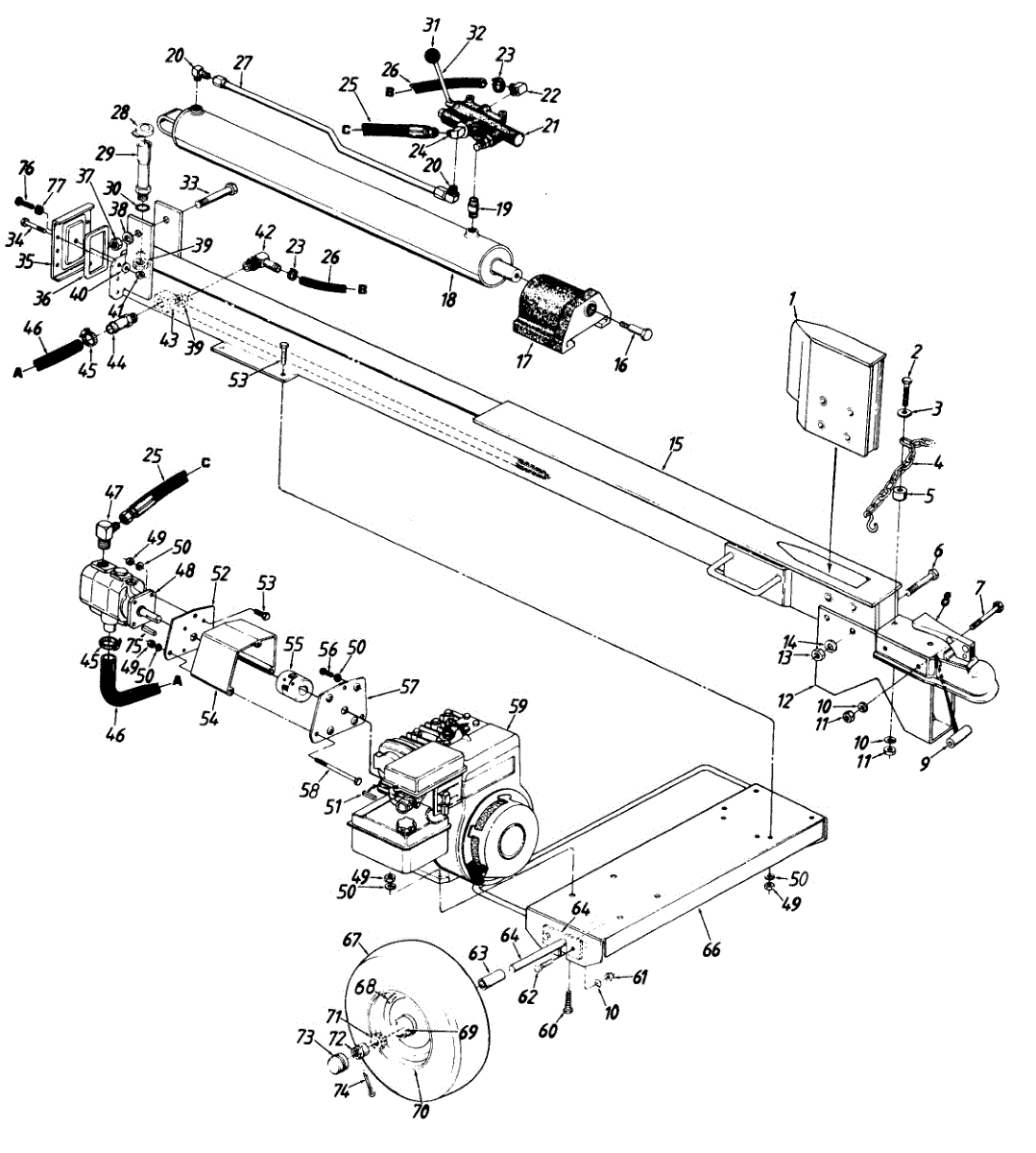 Protective coupling shield for log splitters. Guards the coupling connection from debris and damage. Replace if cracked, bent, or missing for safety.