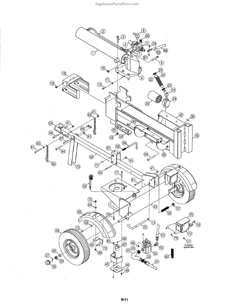 Replace your log splitter's cracked or damaged fender. This protective shield installs on the side to guard against debris and impacts during operation.