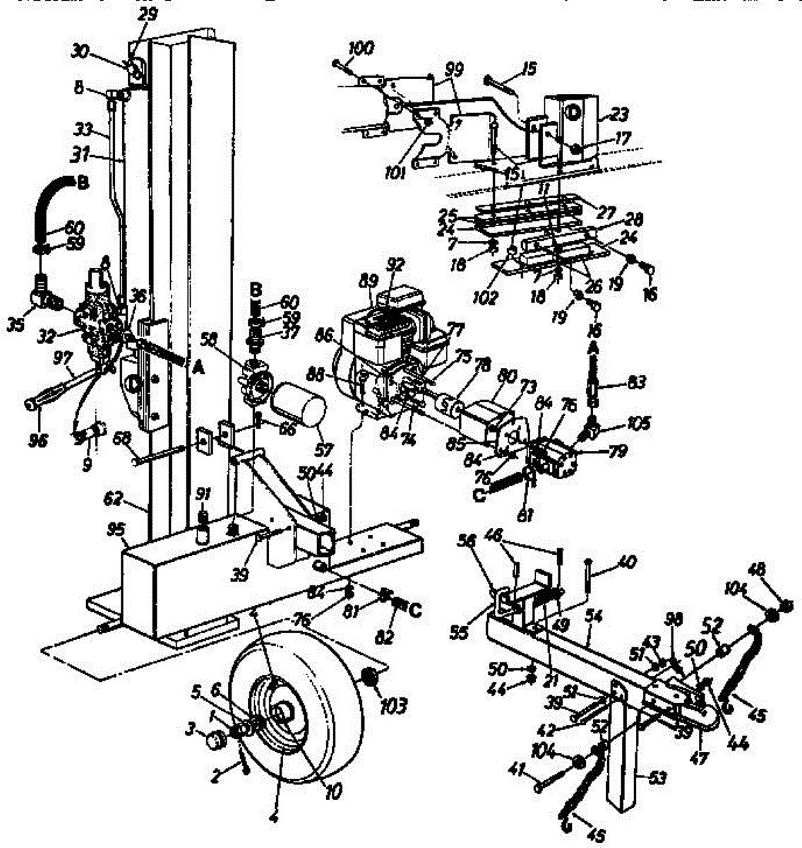 Replacement control handle assembly for log splitters and chippers. Installs on machine control area. Needed when original handle is cracked, broken, or worn.