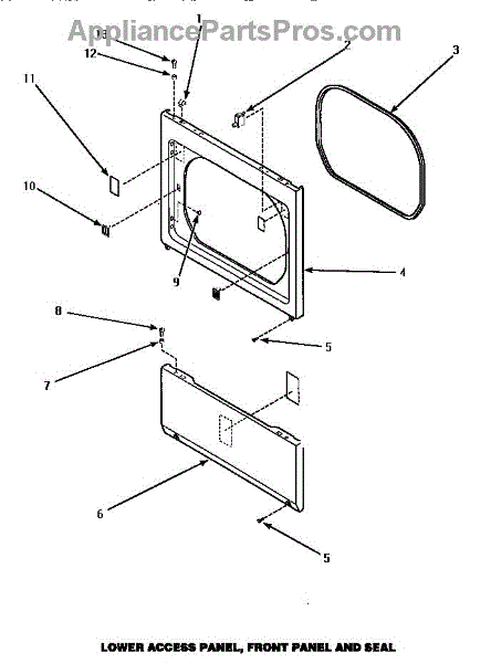 Parts for Amana CE8507W/P1163609WW: Lower Access Panel, Front Panel & Seal Parts