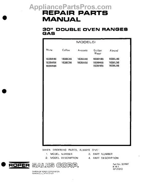 Parts for Whirlpool 1838W46: 01 - Lower Body Parts
