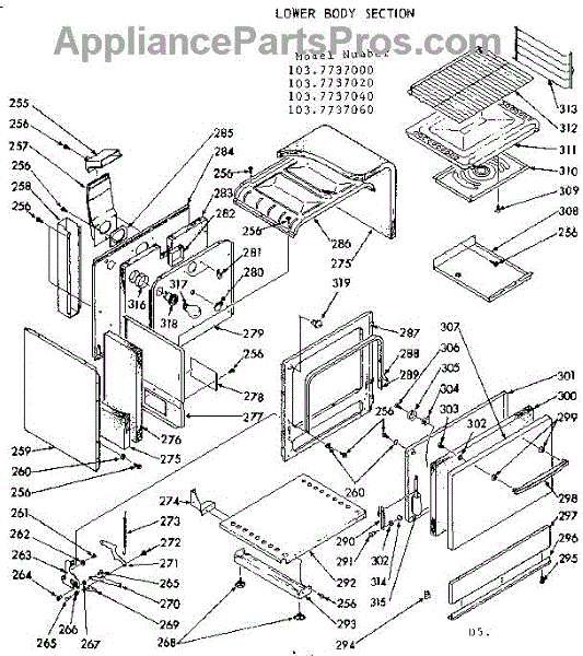 Parts for Kenmore 103.7737060 (1037737060, 103 7737060): Lower Body Section Parts