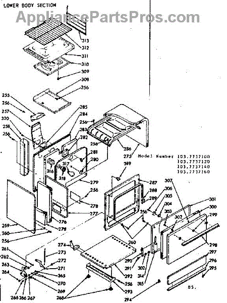Parts for Kenmore 103.7737160 (1037737160, 103 7737160): Lower Body Section Parts