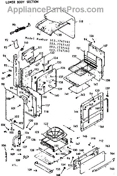 Parts for Kenmore 103.7747121 (1037747121, 103 7747121): Lower Body Section Parts