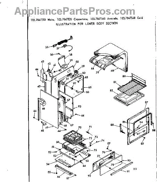 Parts for Kenmore 103.7847540 (1037847540, 103 7847540): Lower Body Section Parts