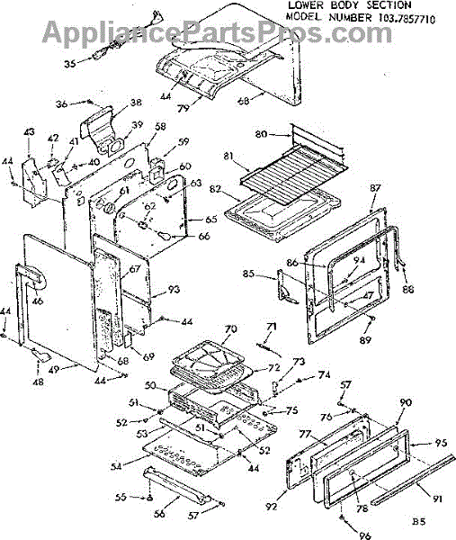 Parts for Kenmore 103.7857710 (1037857710, 103 7857710): Lower Body Section Parts
