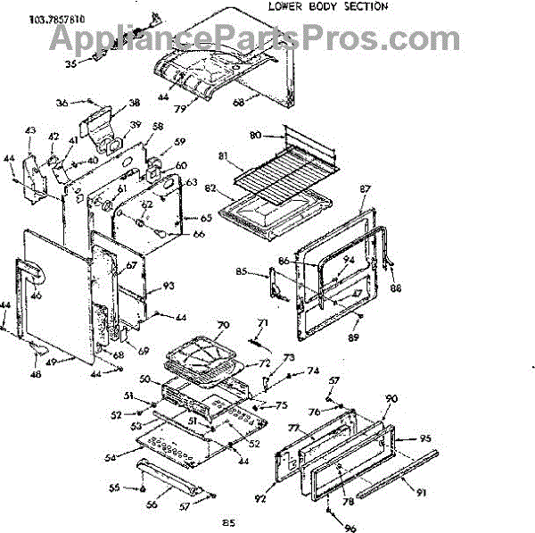 Parts for Kenmore 103.7857810 (1037857810, 103 7857810): Lower Body Section Parts