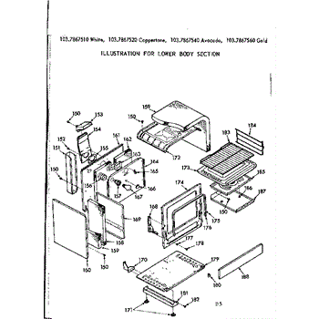 Parts for Kenmore 103.7867560 (1037867560, 103 7867560): Lower Body Section Parts