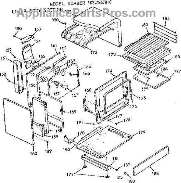 Parts for Kenmore 103.7867810 (1037867810, 103 7867810): Lower Body Section Parts