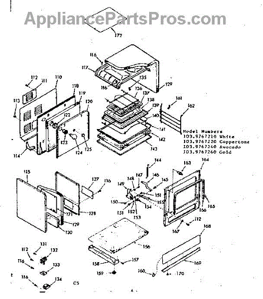 Parts for Kenmore 103.9767240 (1039767240, 103 9767240): Lower Body Section Parts