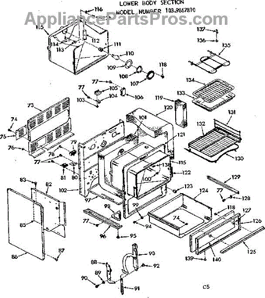Parts for Kenmore 103.9867810 (1039867810, 103 9867810): Lower Body Section Parts
