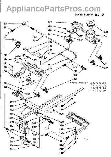 Parts for Kenmore 103.7727100 (1037727100, 103 7727100): Lower Burner Section Parts