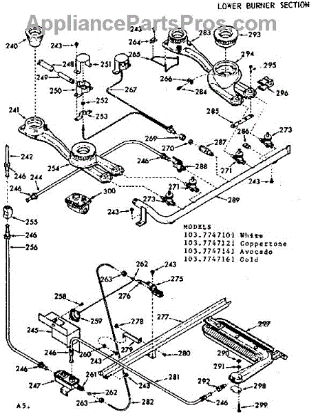 Parts for Kenmore 103.7747101 (1037747101, 103 7747101): Lower Burner Section Parts