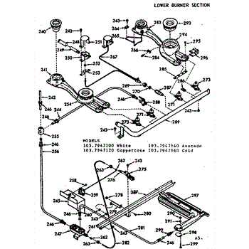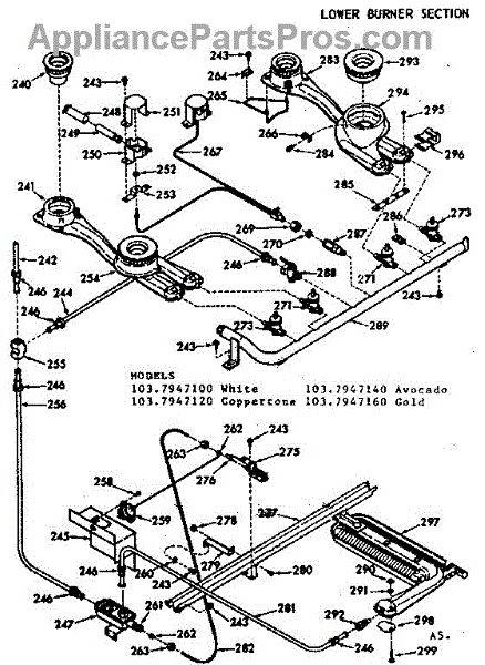 Parts for Kenmore 103.7947160 (1037947160, 103 7947160): Lower Burner Section Parts