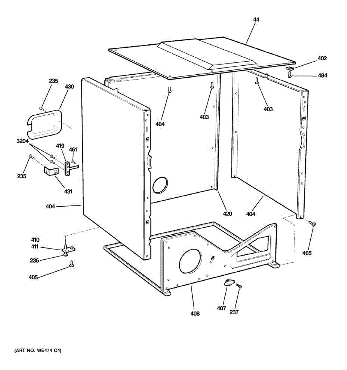 White side panel for dryer exterior cabinet. Replacement for cracked, dented, or damaged side body panels. Restores clean appearance to dryer.