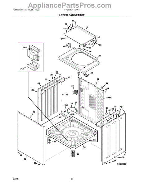 This genuine OEM part is a washer lid. The washer lid is the main piece that covers the washer. Over time, a washer lid can become damaged to the point where it no longer closes securely. If the washer lid is no longer closing all the way or is severely cracked or damaged, it will need to be replaced.To replace this part, start by making sure the washer is unplugged. After it has been powered off, proceed to take a putty knife to lift to release the two retaining clips that secure the washer's main top. Once released, proceed to remove the lid lock assembly wire connector. Fully remove the main top and set it upside down. Release the tension on the lid springs and detach the springs from the main top and hinge bars. Using a Phillips head screwdriver, remove the screws that secure the hinge bars to the lid. Push the hinge bars through the bearings then twist the bars to remove them. This will separate the lid from the main top. Take the new lid and align it with the main top. Insert the hinge bar between the main top and bearing while threading the screws to secure the new top. Reinstall the top panel and connect the wire harness. This replacement part is sourced directly from the manufacturer and is compatible with Frigidaire, Electrolux, Gibson, Kelvinator, and Westinghouse brand washers.